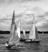 Från Höstseglingarna i Saltsjöbaden 1946, enmansseglingen 14 september. Starbåt 2126 STARDUST ses i förgrunden t h, de andra båtarna på bilden är fr v t h starbåt 904 VÄSTAN, folkbåt F-S120 EJDERN (b. 1946, konstr. Tord Sundén) samt starbåtarna HUX-FLUX II, 1804 SEA STAR, 860 TORPÃN och 1798 LOTTA IV. I bakgrunden t h ses 5m-jakten 5-S85 SPINDRIFT (b. 1945, konstr. Jac. M. Iversen).