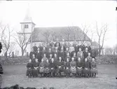 Sannolikt skolklass från Enköpings Realskola för gossar, Kyrkogatan 2, Enköping, troligen 11 juni 1906. I mitten troligen adjunkt Vilhelm Vieweg (1860-1935).