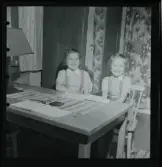 Interiör från Haga slott i Solna socken utanför Stockholm. Salongen eller prinsessan Sibyllas skrivrum möblerat med sittmöbler och skrivbord.