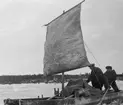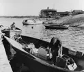 Postföring i forsbåt, Norge. Ur samlingarna i Postmuseet, Oslo.