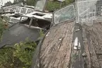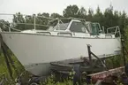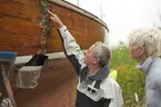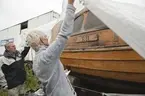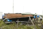 Vrak av Baltisk flyktbåt, eventuellt evakueringsbåt, på stranden i Tubod, Gotland.
