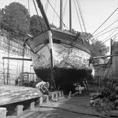 Isbrytare Sankt Erik på väg till och i dockan på Beckholmens varv för bottenöversyn och målning.