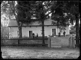 Små bostadshus med fönsterluckor och träfasader på Västerlånggatan i Gamla staden år 1908.