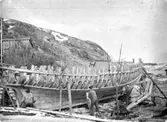"Bogserbåt under byggnation vid Djupviks varv på Tjörn. Bilden tagen ca 1915."