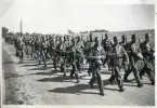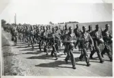 "Bröder, viljen I gå med oss." 9:e kompaniet, Kronobergs regemente, på marsch någonstans i Skåne.
