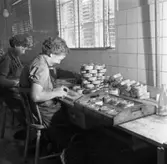 Text till bilden: "Lysekil. Skandia Konservfabrik. Interiör. 1956"