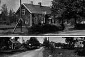 Vändslingan i Mölndals bro, 1940-talet. Parkerade cyklar står uppställda vid busskuren.