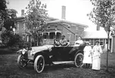 Personalgrupp. Arbetare och ledning vid Gunnebofabriken (kv Valen 3) uppställda framför en av fabriksbyggnaderna.