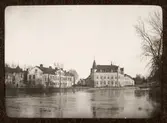 Svartbäcksgatan och gångbron vid Skolgatan, före Haglunds bro, Uppsala 1901