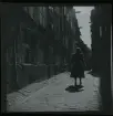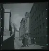 En man och en kvinna kommer gåendes på gata framför Engelbrektskyrkan, Stockholm. 61/1941 Konrad Elméus