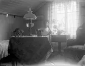 Fru Dorothea Lindström 1852-1927 och sonen Edvin Lindström i finrummet Fregattgatan 13A Björkholmen Karlskrona