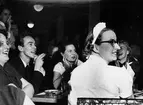 Värdshuset "Den gyldene flygeln". Cabaret med sång och dans i Postgirots lunchrum Klara Norra Kyrkogata, Stockholm, den 28 november 1953.
