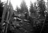 Till vänster Bricken Olsson, Svessar och till höger Linds Beda vid fäbodvallen i Röstabo