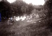 Alrik Johansson med trattgrammofonen + släktingar och goda vänner vid Ryttaren Sandhem.