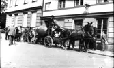 Kugelposten i Västerås. Tvåspann med livréklädda kuskar.