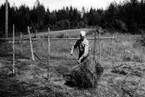 Dalslandsgård. Vinnsäter, Järbo socken. Detalj av modell, höet bärgas