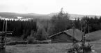 HUS VID EN ÅKER MED NÅGRA HÖHÄSSJOR PÅ.