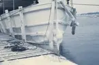 Några män vid Vätterstranden i Jönköping där teleledningarna har rasat ner på grund av isbildning, troligen i januari 1929 då det drog in en kraftig storm.
