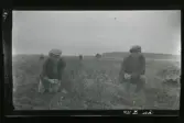 "Fogelstad, potatisplockning, Axel och Arvid A-n." Två män arbetar på en åker, Axel Fredriksson till höger.