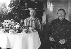 Julfirande med kaffebjudning i hemmet, 1930-40-tal, sannolikt i Sverige
