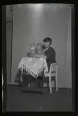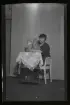 "Annalisa" Porträtt av Frida Anna Elisabeth (kallad Anna-Lisa) Fredriksson framför en julgran tillsammans med två katter.