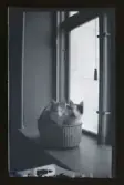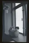 "Kalle och Olle (Fr. Tamm)" Katter i en korg som står i ett fönster.