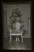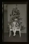 "Annalisa" Porträtt av Frida Anna Elisabeth (kallad Anna-Lisa) Fredriksson sittandes framför en julgran tillsammans med två katter.
