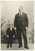 "Lille-Gustaf" Andersson, Kvenneberga, med "Jätten". Helfigur, en face. Ateljéfoto. Ca 1900.