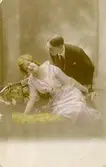 Modell poserar i en långklänning. Nordiska Kompaniet.
