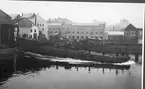 Skioptikonbild med motiv av folksamling längs vägen mellan Paris och Reims. Bilden har förvarats i kartong märkt: Höstresan 1910. Granada 9. Text på bild: "På vägen mellan Paris och Rheims".