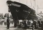 Tyskt lastmotorfartyg på väg till Nynäshamn, år 1953.