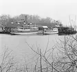 Fartyget under gång på Riddarfjärden på resa från Stockholm inåt Mälaren. Hörnhuset framför stäven på ångbåten är Norr Mälarstrand 22. Fotodatum: 1932-11-16.