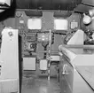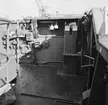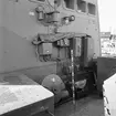 Minsveparen Tärnö ligger förtöjd. En grupp besättningsmän finns synliga ombord. Framför fartyget ligger ytterligare två minsvepare förtöjda.