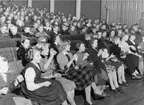 I samlingssalen på postkontoret Stockholm 12. Berit Bjelkestedt, heltidsanställd studieledare i Stockholm, talade om den teoretiska undervisningen och visade prov på audiovisuella hjälpmedel - flanelltavlor, bildband o.s.v. - som används i undervisningen.