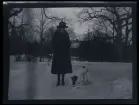 Hund i snön på tomten till familjen Morthensens villa Solveden, Djursholm.