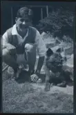 "Människor och djurbilder från Ryssland. Nikifer matar hundarna på gården"