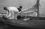 Elever från seglarskolan i Djurgårdsbrunnsviken utanför Sjöhistoriska museet.