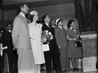 Foto visande H.K.H. prins Gustav Adolf med gemål prinsessan Sibylla i samspråk med konteramiral Sven Yngve Ekstrand.