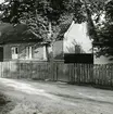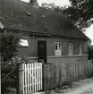 "Stuehuset", västgaveln mot gården, jämför bild 15. Christian Madsens båtbyggeri. Foto N(ils) Nilsson aug (19)64. Danmark, Själland, Lynaes.