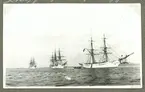 Bilden visar skeppsgossefartyget Jarramas med satta segel till sjöss från babordssida.