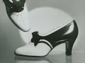 "Sommarskor" Ljust och mörkt skinn, snörning, sidenband.