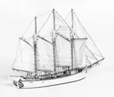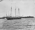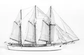 Enl. tidigare noteringar: "Fotografi efter oljemålning av tremastade skonaren "Yngve" målad av Gunnar Carlsson 1979." Repro 1985 av foto tillhörande Thore Ögård".