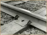 Järnvägssträcka vid Skutskär, spår med Fair T rälsvandringshinder.