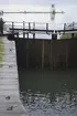 Bilden visar byggnader som ligger bredvid slussen i Brunsbüttel.