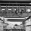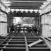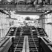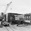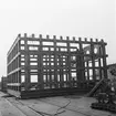 Dokumentation från Höganäs Saltglaserat. Ugnen börjar tömmas. På vagnen står osorterat glas.
