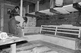 Restaurering i ett kyrkstall i Madesjö. Är numera ett hembygdsmuseum. Norra längan.
