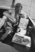 Från prisutdelningen efter KSSS volontärkappseglingar på Trälhavet 10 juli 1927 (Österskärsregattan). Mannen i mitten som talar är eskaderchefen Kurt Roeck Hansen. Med vit skärmmössa t h ses prisutdelaren Hans Fr. Hansen.