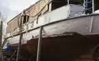 Före detta laxkutter upplagd på land. Sätra Bredängslandet.