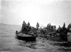 Bron över Tidan vid Vad. Identifierade hus: 1. Valand 2. Augusta i Eka 3. Gamla skolan, i halva delen av stugan var det träslöjd 4. Rättarns