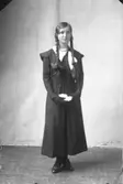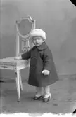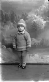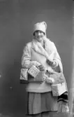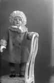 Brr va kallt, 4 februari 1966 Närbild på en liten baby klädd i overall med luva, mössa och vantar och som ligger nedbäddad i en barnvagn.